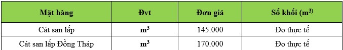 BẢNG BÁO GIÁ CÁT SAN LẤP ĐÓNG BAO