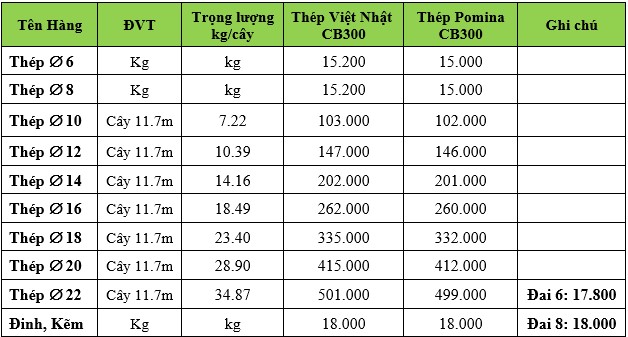 BẢNG BÁO GIÁ SẮT THÉP