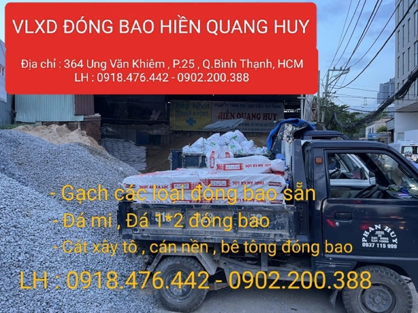 Cát đóng bao 12.000đ/bao , Đá đóng bao 15.000đ/bao , Gạch tuynel 980đ/v đóng bao Tp. Thủ Đức tại công ty VLXD Hiền Quang huy là một loại hình dịch vụ kinh doanh vật liệu xây dựng mới linh hoạt, tiện lợi....